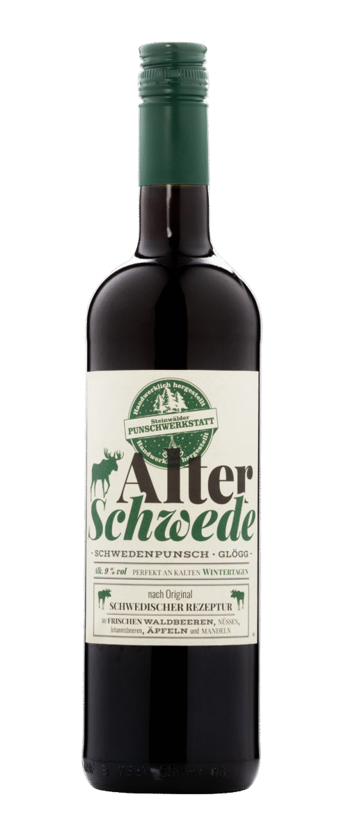 Frische Waldbeeren, Äpfel und Johannisbeeren gehören ebenfalls zu diesem typisch nordischen Weihnachtspunsch, der hier im Steinwald nach einem Originalrezept aus Schweden produziert wird. Durch seinen unverwechselbaren Geschmack bietet Alter Schwede etwas Abwechslung zu klassischen Glühweinsorten.