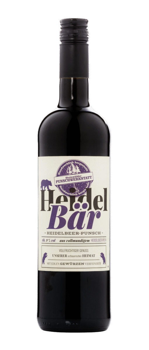 Mit einem Schuss Rum und edlen Gewürzen verfeinert, entsteht der kräftig-fruchtige HeidelBär aus vollmundigem Heidelbeerwein.